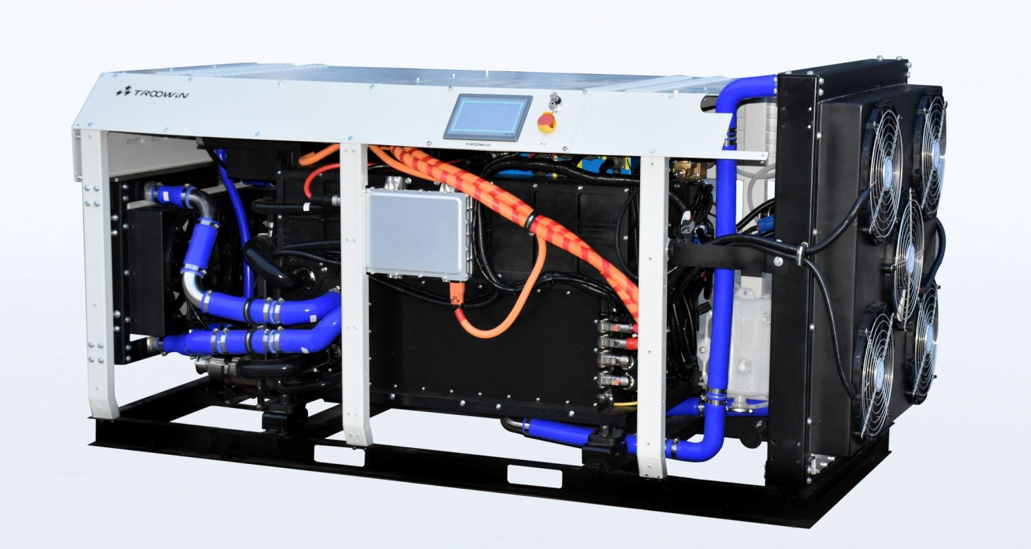 众宇动力TW50ZH燃料电池发电系统是基于其TW5000系列车用燃料电池发动机技术平台,该系统分别由燃料电池电堆模块、空气/氢气进排气模块、电堆散热器、辅助散热器、高低压配电模块、监控模块等组成。经验证,TW50ZH燃料电池发电机组具有响应速度快、集成度高、功率密度高、零排放、低噪音、无振动,操作简单等特点,为用户提供更多灵活的解决方案。